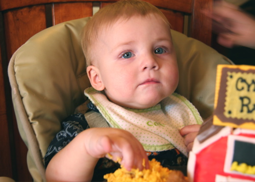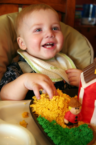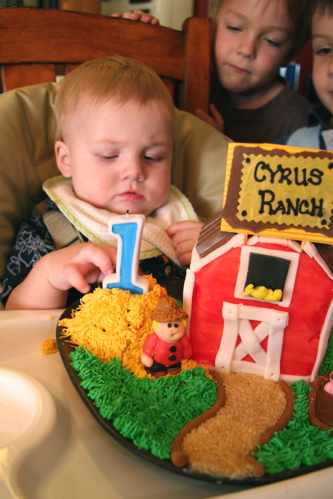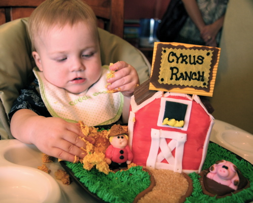 Eating Cake! October 25, 2008 by lorilynnnavarro Cyrus LOVED his birthday cake. He was a little cautious at first, but the end result was awesome, he especially liked the kitkats (AKA – barn roof :)! Share this: Click to share on Facebook (Opens in new window) Facebook Click to share on X (Opens in new window) X Click to share on Pinterest (Opens in new window) Pinterest Click to email a link to a friend (Opens in new window) Email Like Loading... Related